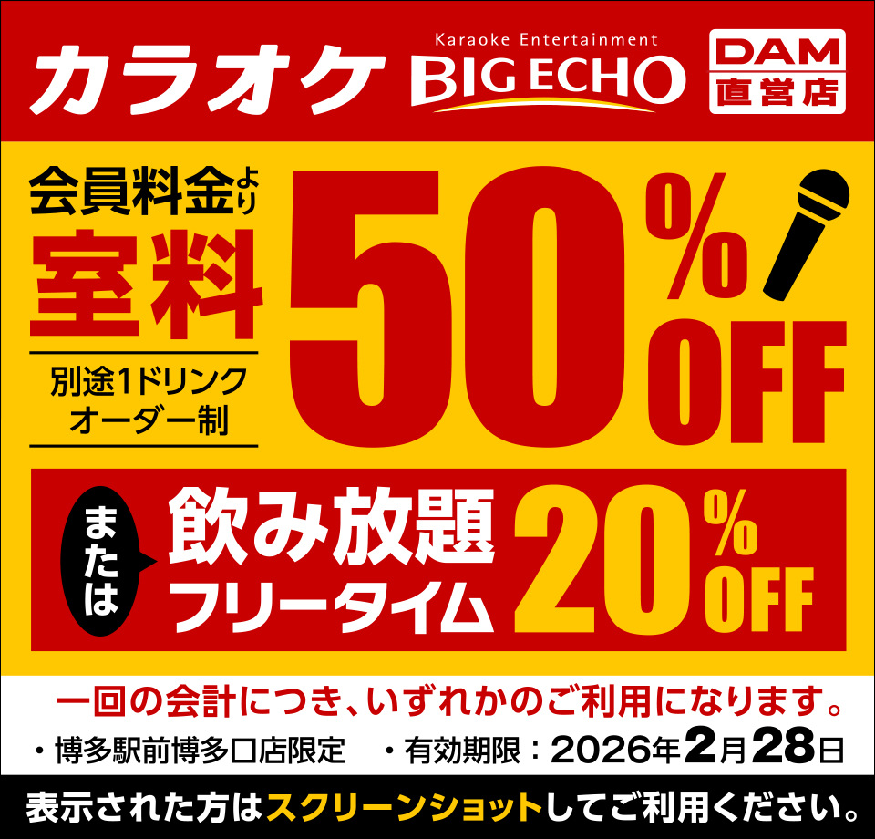【営業時間】月~木・日・祝12:00~翌5:00 / 金・土・祝前12:00~翌6:00【TEL】092-292-1460【住所】〒812-0011 福岡県福岡市博多区博多駅前3丁目30-1